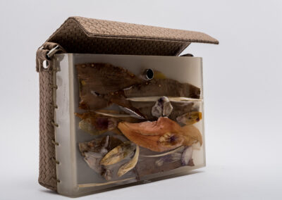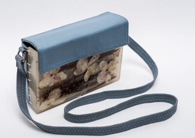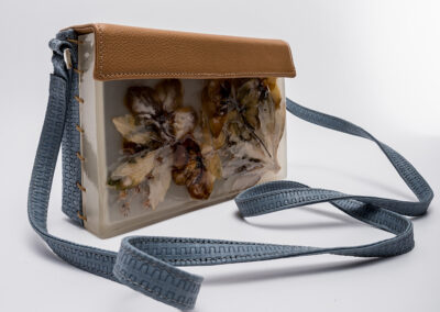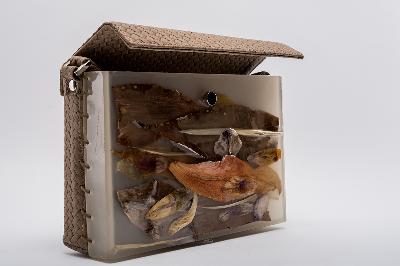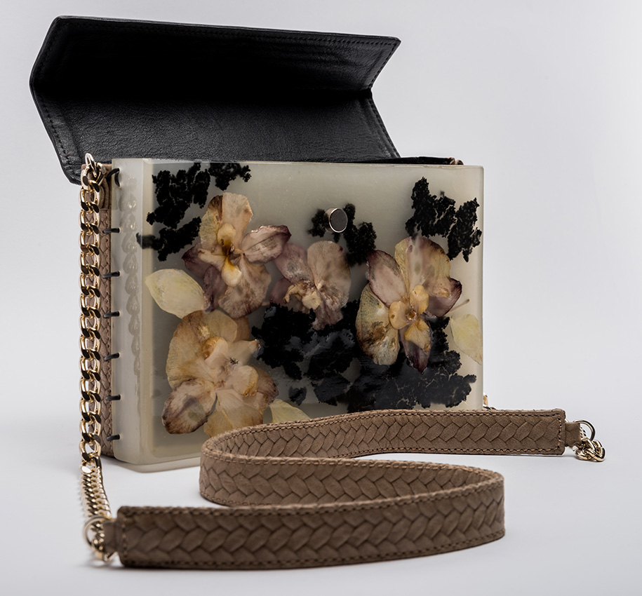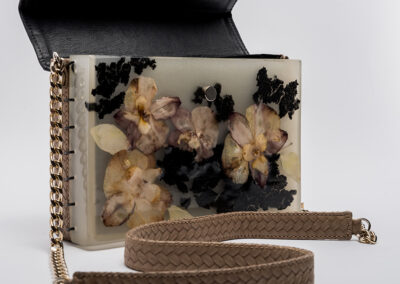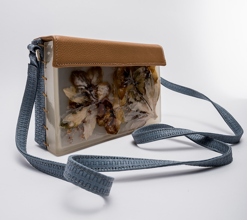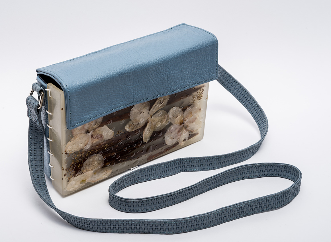 Colecția de accesorii unicat „Second Life“ completează propunerile brandului, urmărind acceași linie și căutare în design cu accent pe inovație. Cristina Lazăr proiectează în această colecție asocieri contrastante de materiale și texturi, cum este pielea naturală și rășina epoxidică în care înglobează flori, frunze, bucăți de lemn, scoartă de copac,etc.