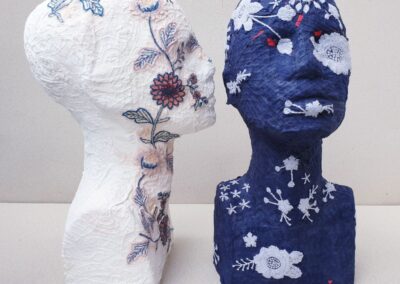 Seria Self-portrait reflectă frânturi de memorie, de trăiri, de imagini pierdute și regăsite. Primele piese realizate sunt reflexia copilăriei văzută din prisma părintelui, urmând ca imaginile să devină mai introspective, mai reflexive sau chiar mai amuzante. Urmăresc o linie naratoare pe care merg cu ajutorul formei standardizate a capului, a materialelor și tehnicilor textile. Povestesc prin expresia unică a chipului și a diversității materialelor, a micilor reliefuri, a culorilor și a texturilor.